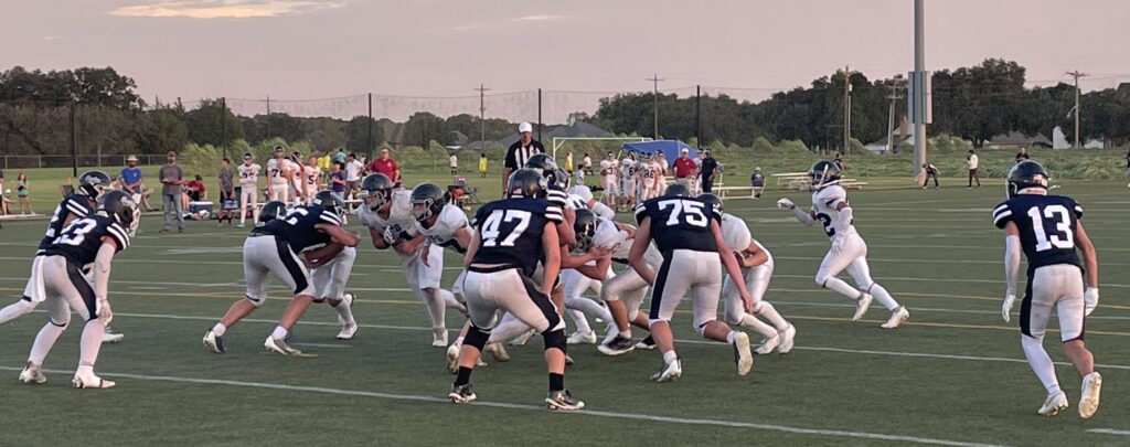 “John Paul the Great showed they are a team that’s been there,” Eagles head coach Grayson Standiford said after the game. “We’re still trying to figure it out.” The Eagles’ program, in its third year of tackle football, will certainly benefit in time if its junior varsity program brings players through its system to the varsity level as has JPG. For now, as Standiford points out, the disparity remains.